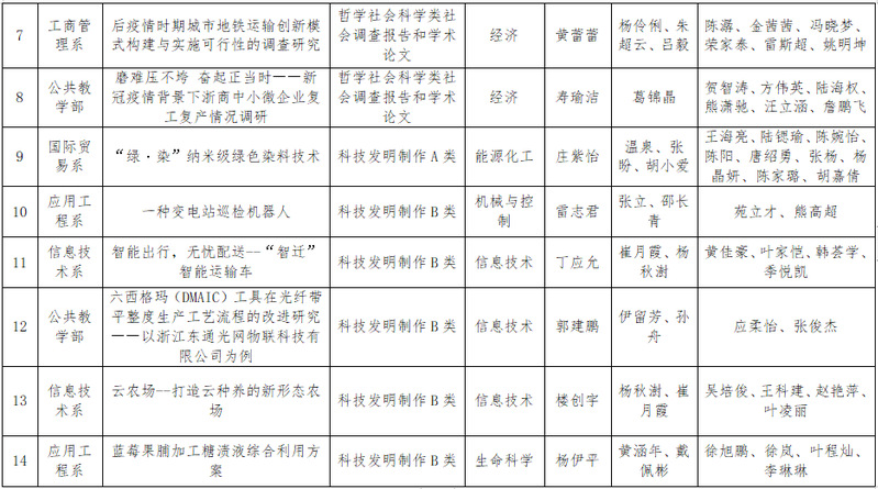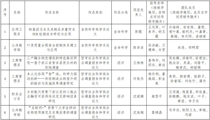根据团省委关于组织开展浙江省第十七届“挑战杯”大学生课外学术科技作品竞赛的有关要求,经评审,现将拟推荐参加浙江省第十七届“挑战杯”大学生课外学术科技作品竞赛作品予以公示,公示期为4月2日至4月6日。