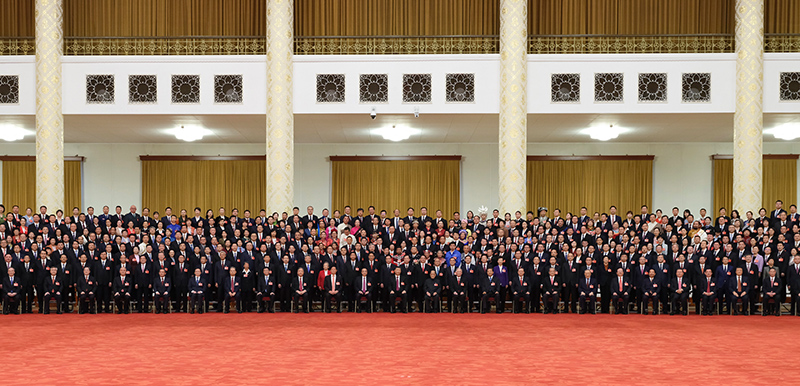 10月23日下午,中共中央总书记、国家主席、中央军委主席习近平等领导同志在北京人民大会堂亲切会见出席党的二十大代表、特邀代表和列席人员,并同大家合影留念。新华社记者 鞠鹏 摄