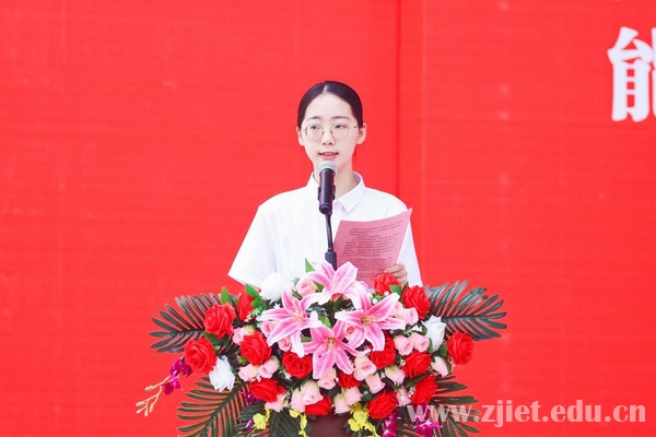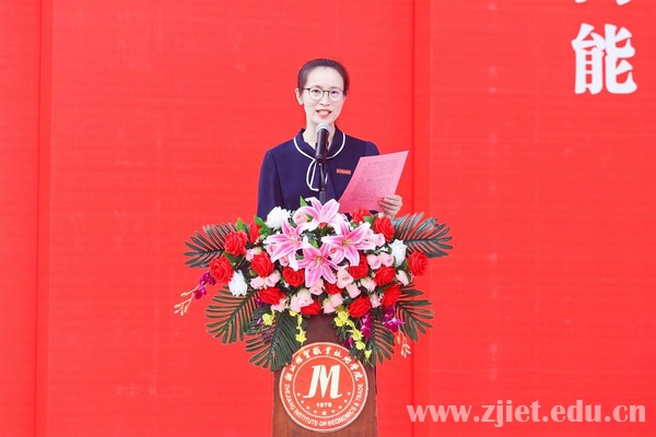 教师代表、应用工程学院沈妍彦发言,“邀请”新生们在大学期间做好“与自己对话”、“与伙伴同行”、“与理想共生”三件事。
