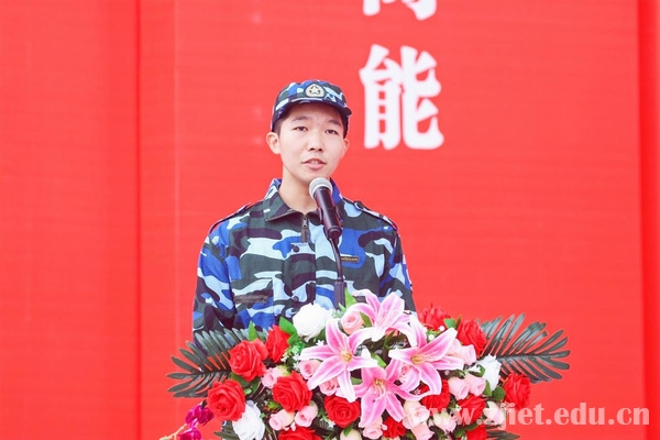 新生代表、信息技术学院金烨对学校热情周到暖心的迎新服务表示感谢,并将“团结互助、坚持不懈、追求卓越”作为经贸求学誓言与大家分享。