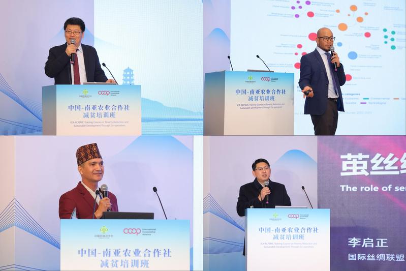 在专家讲座环节,总社国际合作部外经处处长徐明峰围绕中国供销合作社的扶贫实践,从合作社功能定位、扶贫举措、经验总结等3个方面全面阐述了中国供销合作社的经营体系及农业减贫经验;来自马来西亚民族合作推进社的那扎奴丁先生分享了马来西亚合作社在促进社会经济发展过程中发挥的重要作用,以及马来西亚全国总社从经济、社会、环境、科技以及地缘等5个维度全面推进合作社可持续发展的各项措施;尼泊尔皇家多用途合作社有限公司董事长西塔介绍了尼泊尔政府的减贫政策,以及尼泊尔合作社银行推进社员减贫领域的具体措施;国际丝绸联盟秘书长李启正从全球茧丝绸的发展历史、产业特征、发展现状、发展方向等4个维度全面阐述了桑蚕丝在农业减贫增收中的重要作用。
