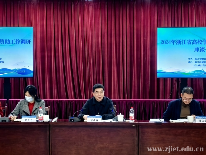时序更替,梦想前行。1月10日,2024年浙江省高校学生资助工作调研座谈会在我校召开。浙江省教育发展中心副主任章正春出席并讲话,学生资助部主任陈先念、资助部副主任张芳芳等一行6人,下沙片区13所高校学工部、研工部有关负责人及资助干部近40人,齐聚一堂共商共绘2024年资助育人新蓝图。本次座谈会由省教育发展中心学生资助部主任陈先念主持。